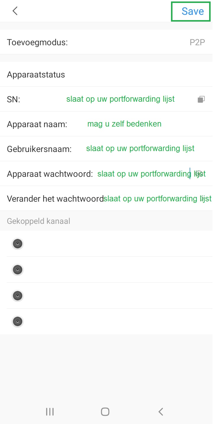 Je kunt hier de SN nummer invoeren die wij naar je gemaild hebben in de portforwarding lijst